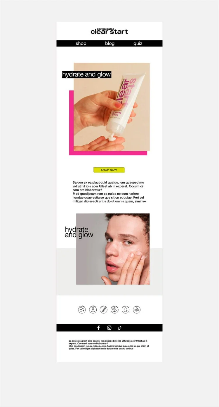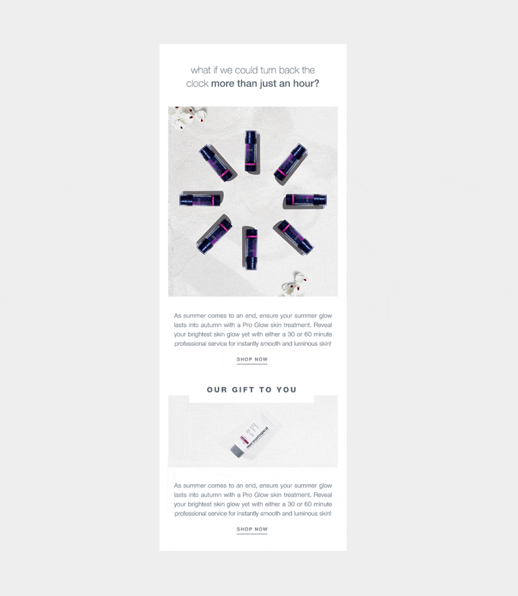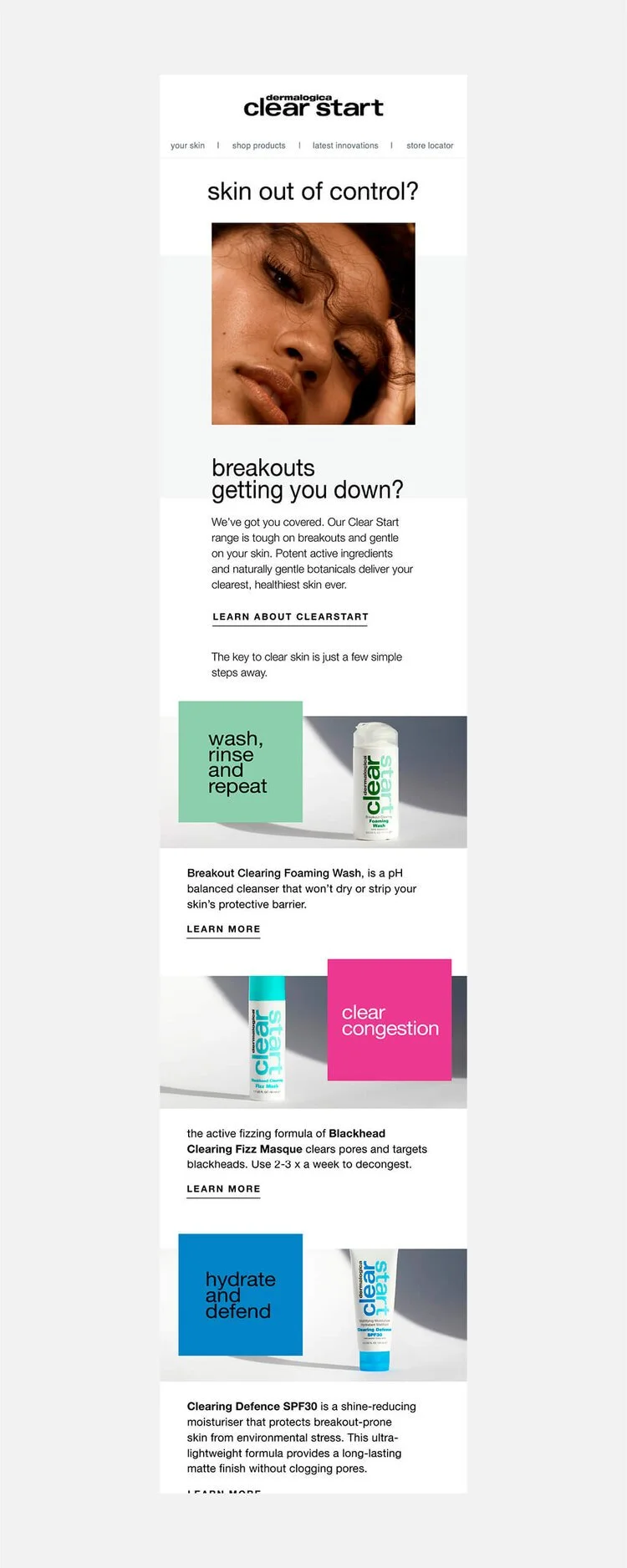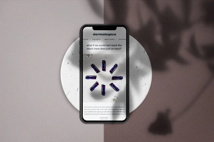 Email designs for Dermalogica, incorporating animation, strong typography and layout