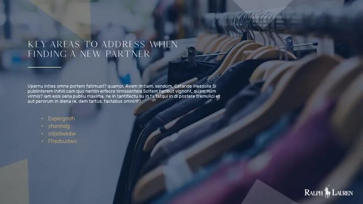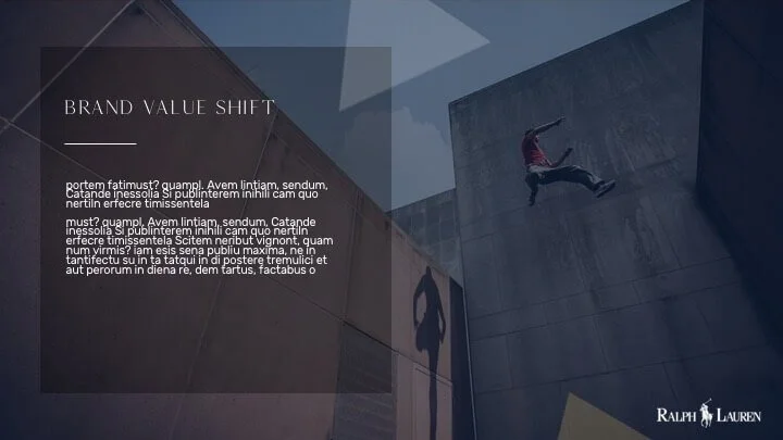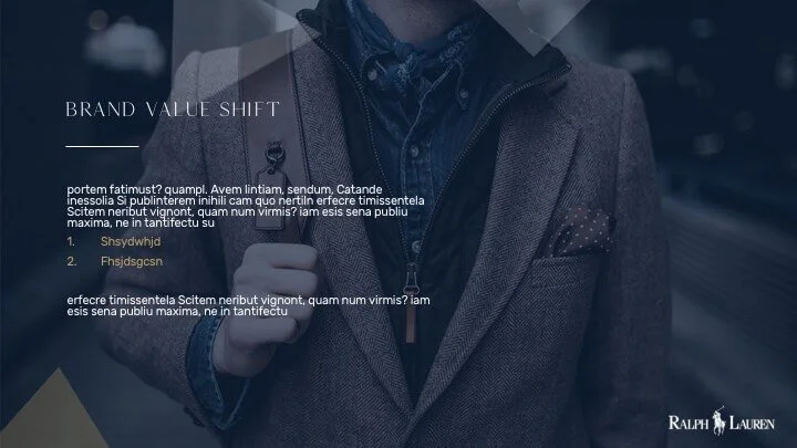 A partnership and sponsorship proposal for Ralph Lauren to connect with a new brand. The proposal uses the core brand values and reflects a premium look and feel.